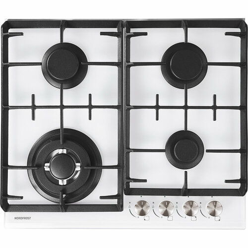 Варочная поверхность NORDFROST HM 6044 W, газ-контроль, чугунные решетки, белое стекло