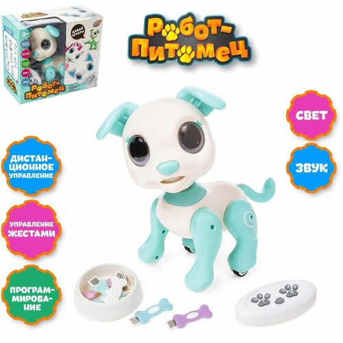 Робот-собака Питомец: Щенок, радиоуправляемый, интерактивный, работает от аккумулятора, цвет бирюзовый