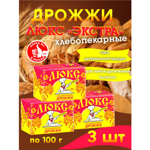 Дрожжи прессованные Люкс экстра 3 шт по 100 гр.