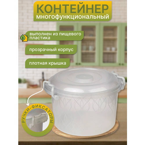 Контейнер для хранения 10 л - прозрачный пластик, крышка с фиксаторами и ручкой