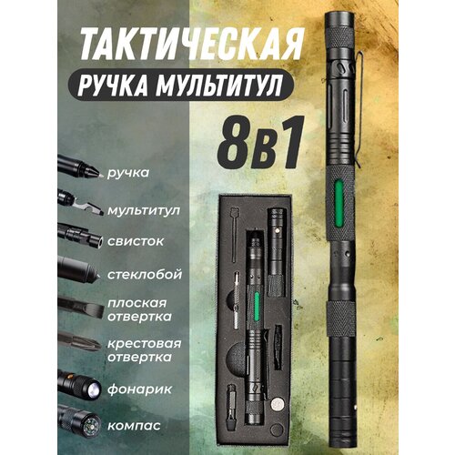 Тактическая шариковая ручка, зеленая / Мультитул походный, туристический / Подарок мужчине военному