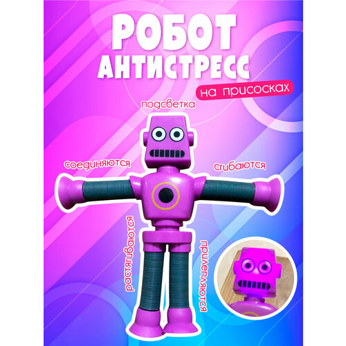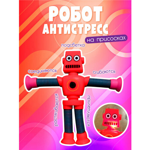 Игрушка антистресс для детей / Робот телескопический на присосках с подсветкой / Трубки pop tube