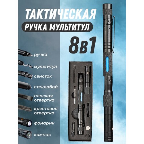 Тактическая шариковая ручка, синяя / Мультитул походный, туристический / Подарок мужчине военному