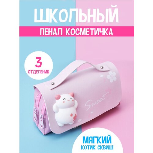 Пенал косметичка школьный для девочки на молнии большой / Подарок ребенку на 1 сентября