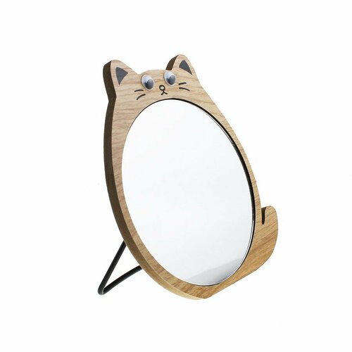 Зеркало настольное дерево кот 16х18см