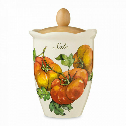 Банка для хранения сыпучих продуктов, 750 мл, керамика, дерево, декор 7370/1-MDT Mercato della Terra