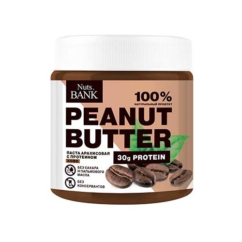 Паста арахисовая Peanut Butter с протеином кофе Nuts BANK, 500 г, пластиковая банка