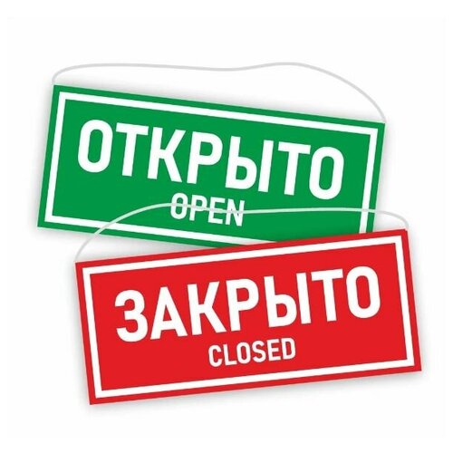Табличка открыто закрыто 35х15 см. двусторонняя / Информационная табличка на дверь (со шнурком и присоской)