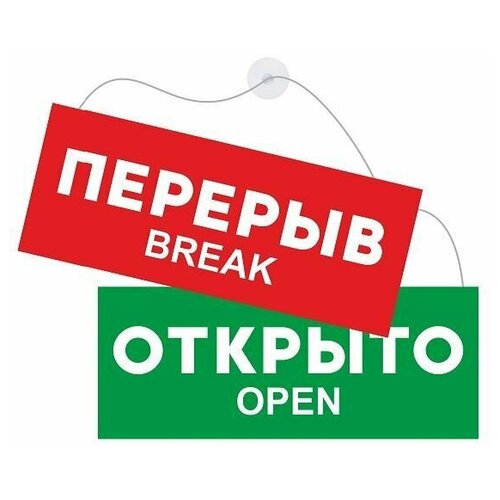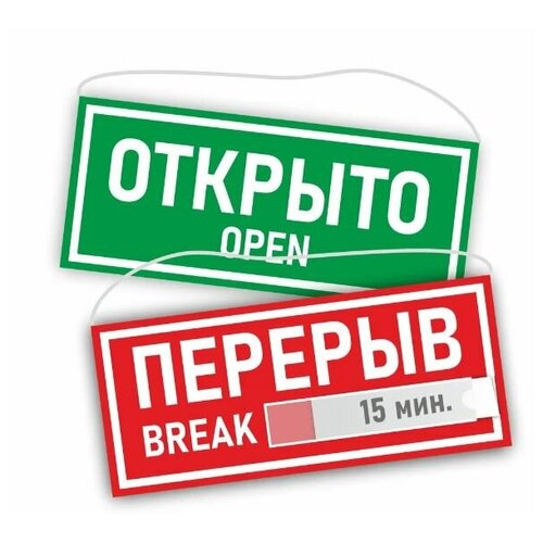 Табличка "Открыто-Перерыв" 30 х 12 см. двусторонняя / Информационная табличка на дверь (со шнурком и присоской)