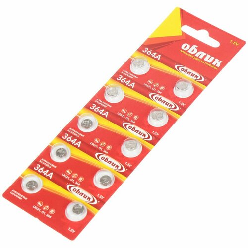 Батарейка Облик, LR621 (364A, G01), Alkaline, щелочная, 1.5 В, блистер, 10 шт