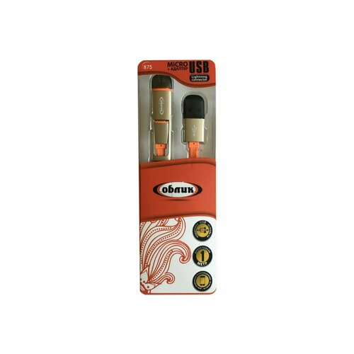 Кабель для зарядки Облик, 875 micro USB/iphone, цвет оранжевый, 1 шт