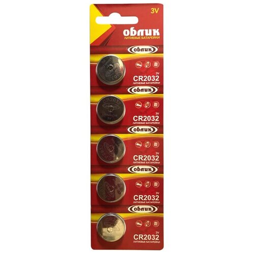 Батарейка Облик, CR2032, Lithium, литиевая, 3 В, блистер, 5 шт