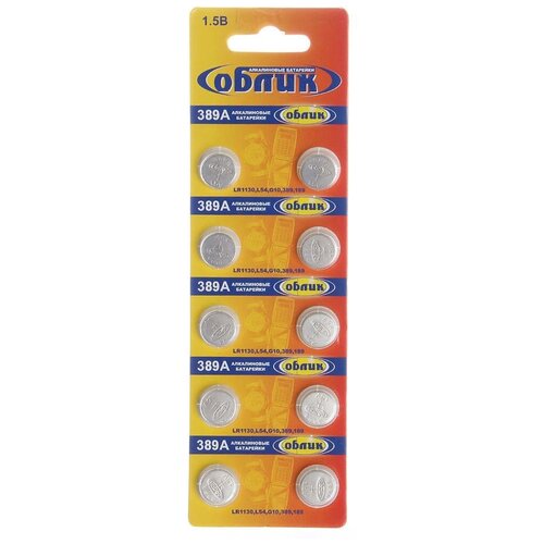 Батарейка Облик, LR1130 (389A, G10), Alkaline, алкалиновая, 1.5 В, блистер, 10 шт