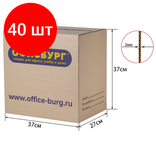 Комплект 40 шт, Гофроящик с логотипом, длина 370 х ширина 270 х высота 370 мм, марка Т22, профиль В, офисбург, 440138