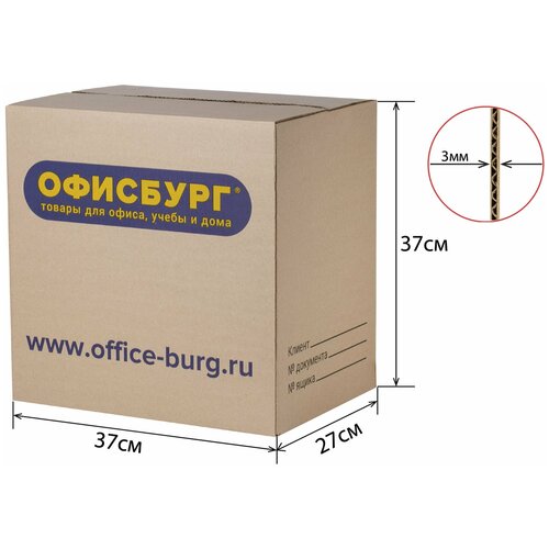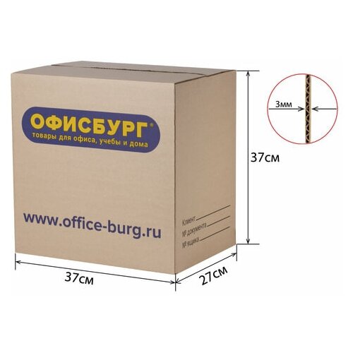 Гофроящик с логотипом, длина 370 х ширина 270 х высота 370 мм, марка Т22, профиль В, офисбург, 440138 (цена за 20 ед. товара)