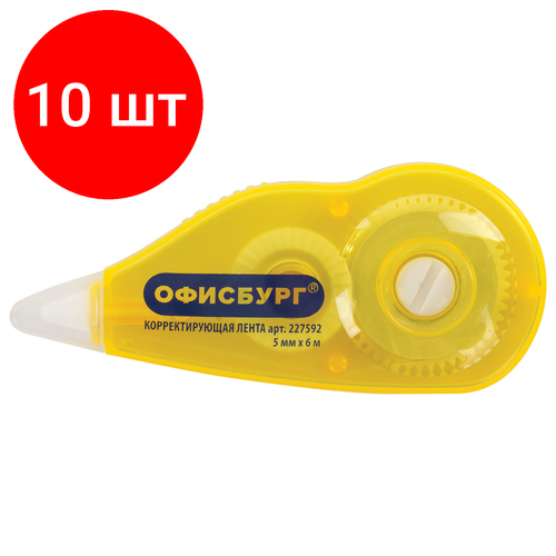 Комплект 10 шт, Корректирующая лента офисбург 5 мм х 6 м, корпус желтый, с подкручиванием, блистер, 227592