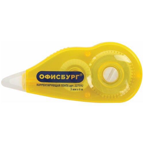 Корректирующая лента офисбург 5 мм х 6 м, корпус желтый, механизм перемотки, блистер, 227592