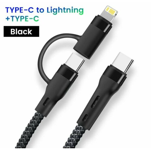 Кабель для зарядки телефона 1 метр, / Универсальный шнур, провод с переходником. / USB Type-C - USB Type-C/Lightning. Тканевая оплетка.