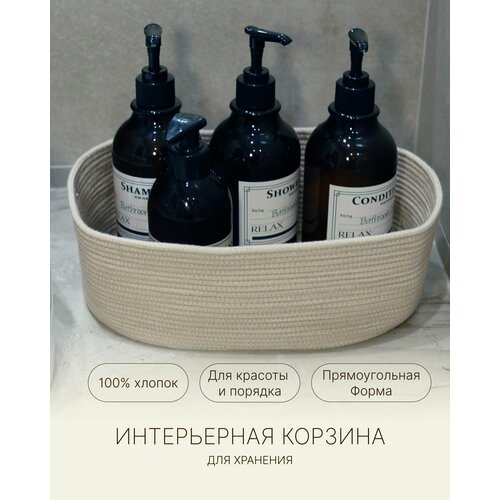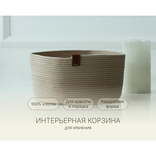 Корзина интерьерная для хранения в ванной, для мелочей, бежевая, натуральный хлопок, 20x10 см