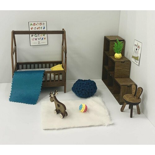 Мебель для кукол Ola la Home Детская комната синяя для кукольного домика до 16 см