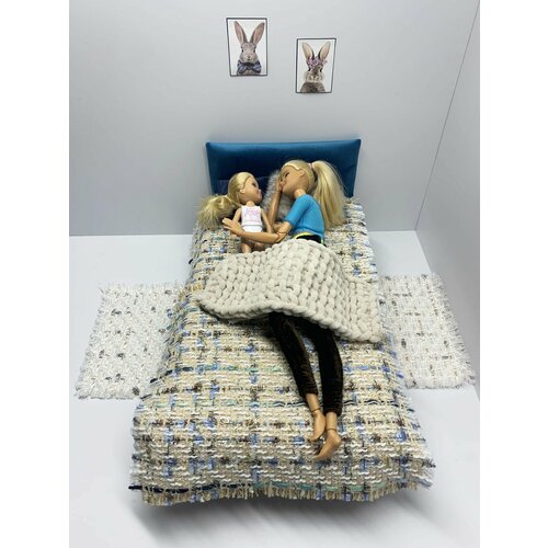 Мебель для кукол Барби Вarbie до 30 см Ola la Home Кроватка синяя игрушечная в кукольный домик