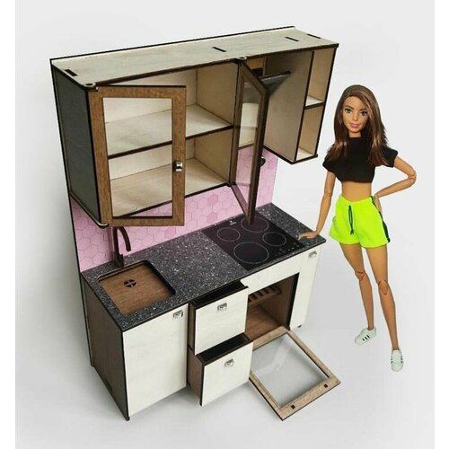 Мебель для кукол Барби до 30см Ola la Home Кухня прямая игрушечная в кукольный домик Вarbie