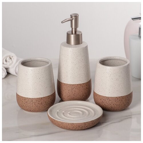 Набор аксессуаров для ванной комнаты «Кохалонг», 4 предмета (мыльница, дозатор для мыла, 2 стакана)
