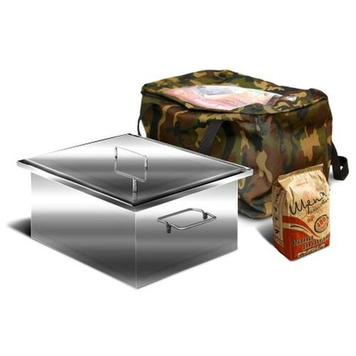 Коптильня Ольховый дым Универсал 400х300х250мм 2-хъярусная 1.5мм, гидрозатвор, поддон для сбора жира, сумка, пакет щепы ольховой
