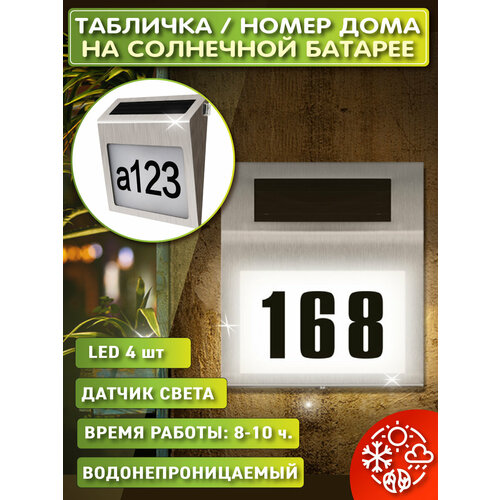 OlLena Garden / Табличка с номером дома с подсветкой на солнечной батарее / Светильник уличный фасадный 4 LED