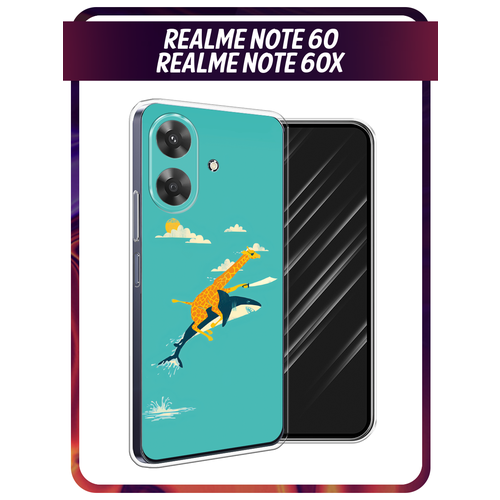 Чехол на Realme Note 60/60X / Реалми Нот 60/60X с принтом Жираф на акуле