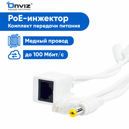 Комплект передачи питания и данных по кабелю Ethernet, PoE инжектор Onviz / PoE сплиттер / PoE адаптер