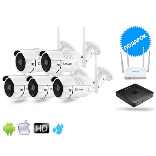 Комплект из 5-ти уличных ip WiFi камер видеонаблюдения Onviz U340 Pro, набор беспроводных камер для дачи, видеонаблюдение уличное
