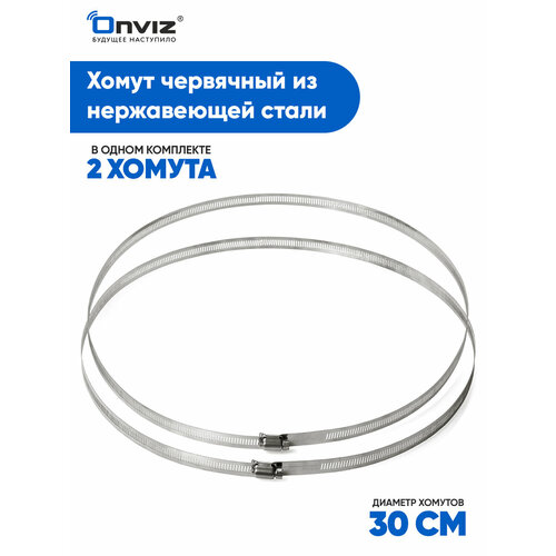 Хомут стальной червячный Onviz - диаметр 300 мм, 2 шт, вентиляционный из нержавеющей стали, хомут на столб