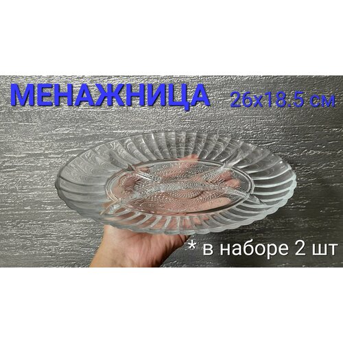 Менажница стеклянная, 4 отдела/ Сервировочное овальное блюдо, в наборе 2 шт/ для орехов фруктов конфет