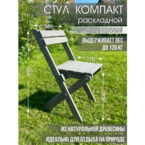Стул складной деревянный "Компакт" для сада, дома цвет "Серо-голубой"
