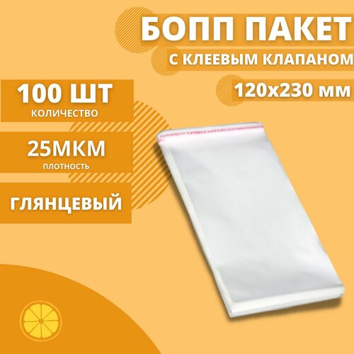 Пакеты фасовочные с клеевым клапаном 120*230+30мм. 25 мкм. (100 шт.)