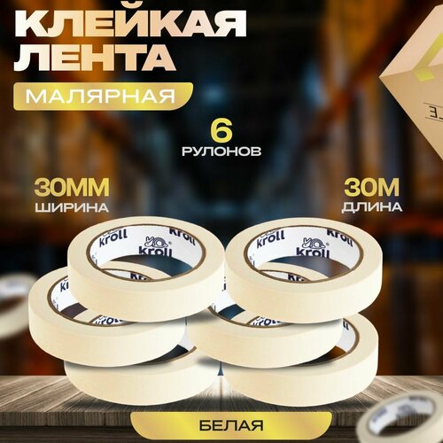 Малярный скотч-лента, 30мм х 30м, набор 6 шт. Малярная лента бумажная