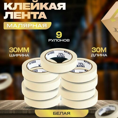 Малярный скотч-лента, 30мм х 30м, набор 9 шт. Малярная лента бумажная