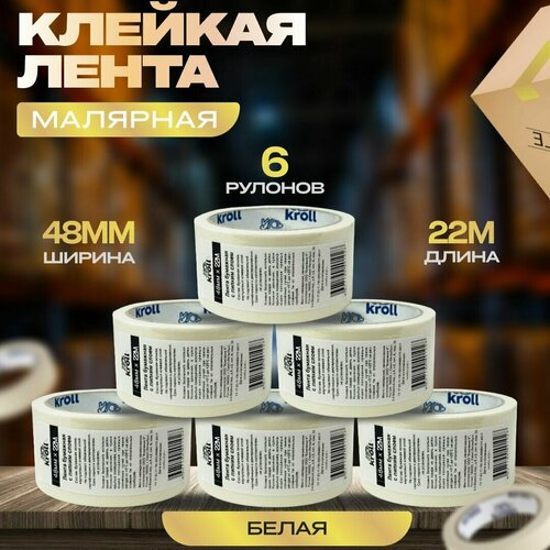 Малярный скотч-лента, 48мм х 22м, набор 6 шт. Малярная лента бумажная