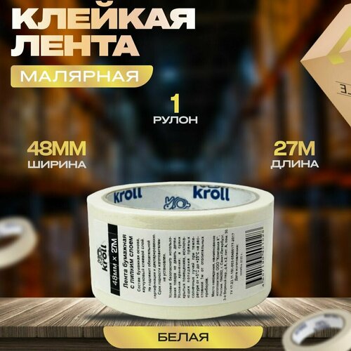 Малярный скотч-лента, 48мм х 27м, набор 1 шт. Малярная лента бумажная