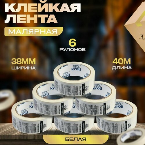 Малярный скотч-лента, 38мм х 40м, набор 6 шт. Малярная лента бумажная