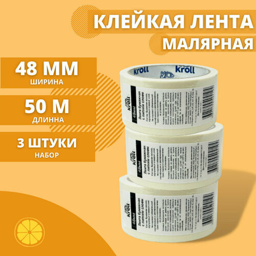 Малярный скотч-лента, 48мм х 50м, набор 3 шт. Малярная лента бумажная