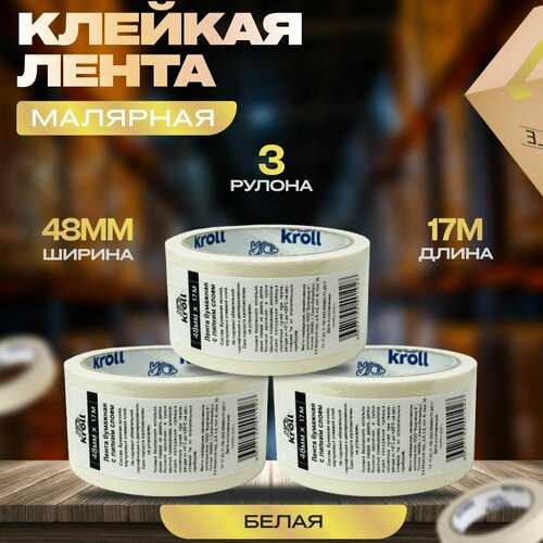 Малярный скотч-лента, 48мм х 17м, набор 3 шт. Малярная лента бумажная