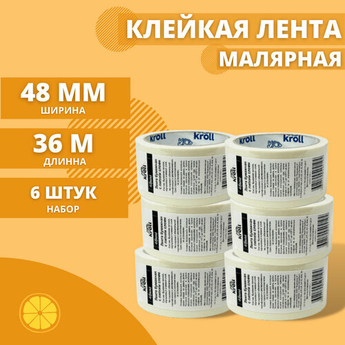 Малярный скотч-лента, 48мм х 36м, набор 6 шт. Малярная лента бумажная