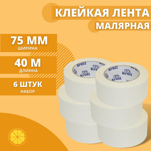 Малярный скотч-лента, 75мм х 40м, набор 6 шт. Малярная лента бумажная