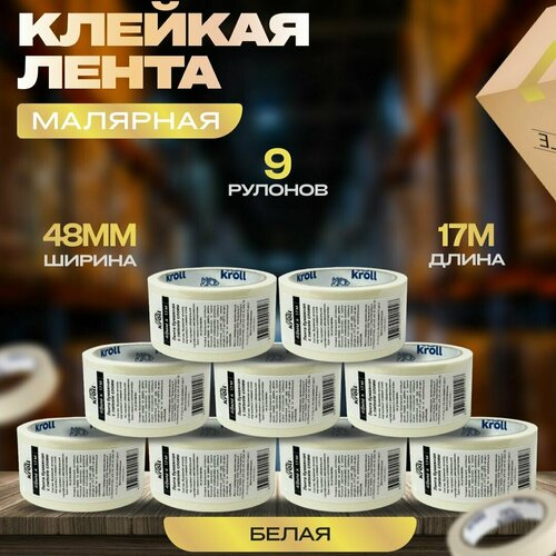 Малярный скотч-лента, 48мм х 17м, набор 9 шт. Малярная лента бумажная