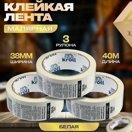 Малярный скотч-лента, 38мм х 40м, набор 3 шт. Малярная лента бумажная