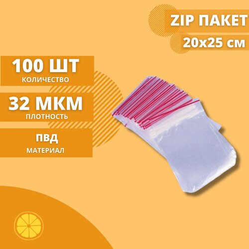 Зип пакеты 20*25см. 100 шт. Толщина 32мкм. Пакет с замком/с застежкой Зиплок(ZipLock), Гриппер.
