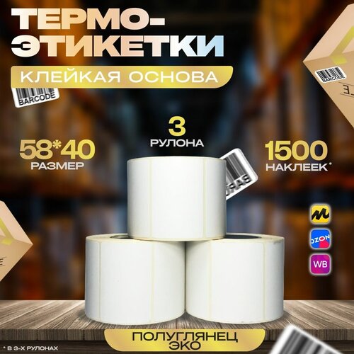 Термоэтикетки 58х40мм (500 шт/рул) 3шт, самоклеящиеся в рулоне, внешний диаметр рулона 70мм, 40мм полноразмерная втулка