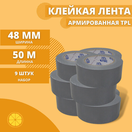 Армированная клейкая лента, 48мм х 50м, набор 9 шт.